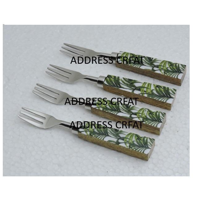 New Arrival Stainless Steel Fork Wood and Enable Print Handle Wedding and Birthday Party Use Cocktail Fork Set Best Selling