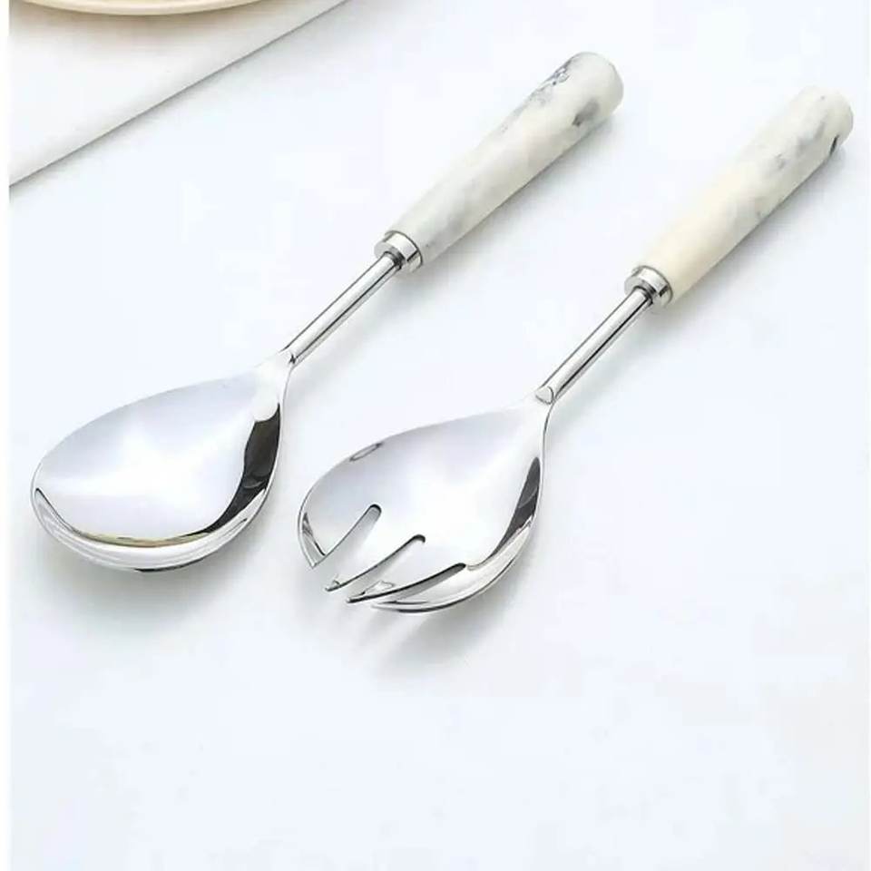 New Arrival Stainless Steel Salad Server with Marble Handle For Home & Wedding Table Dinner Serving Spoon And Forks