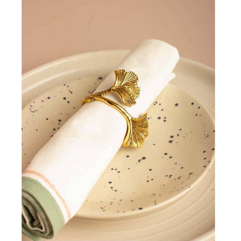 New Arrival Stocked Novelty Leaf Gold Aluminum Napkin Ring Holders for Wedding Dinner Birthday Party Table Decorations