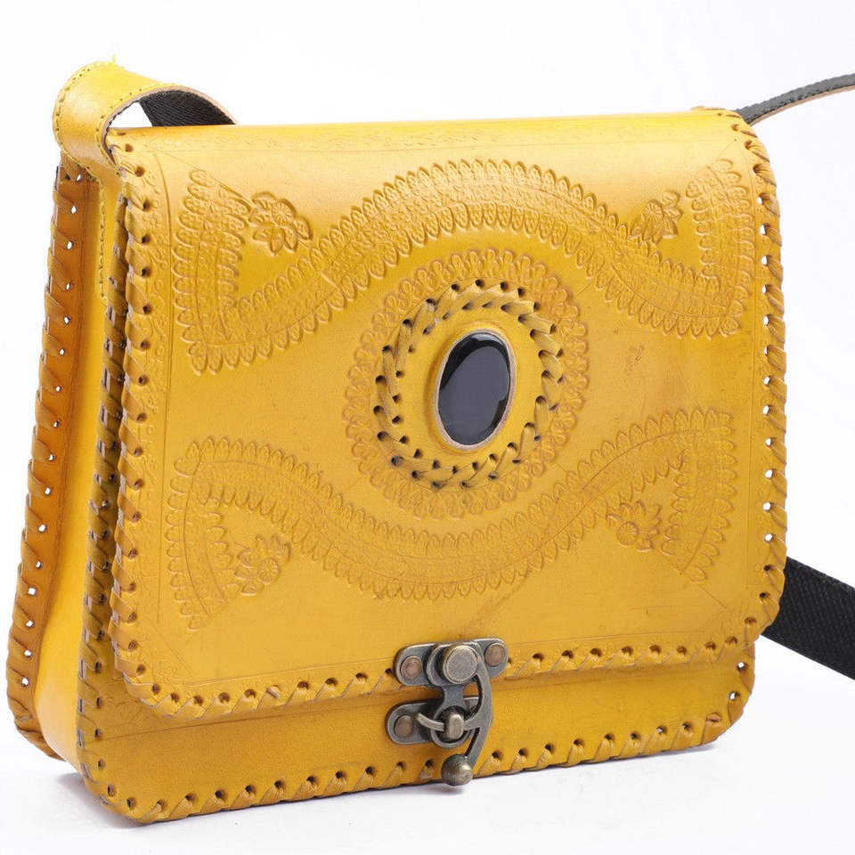 New Arrival Durable Waterproof Stone Embossed Beading Sling Bag Made Genuine Leather Women Girls Stylish Vintage Look Yellow