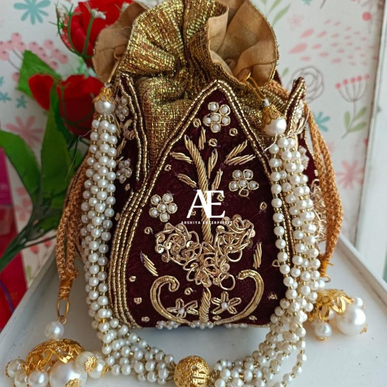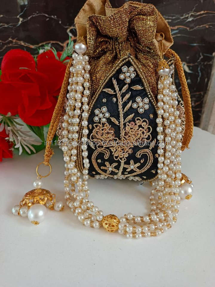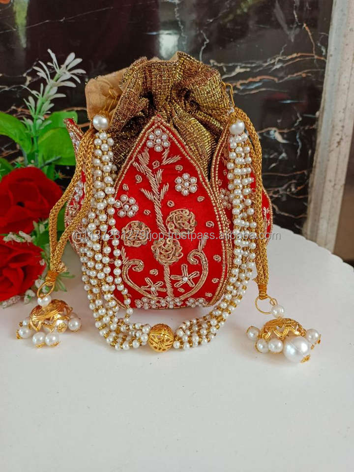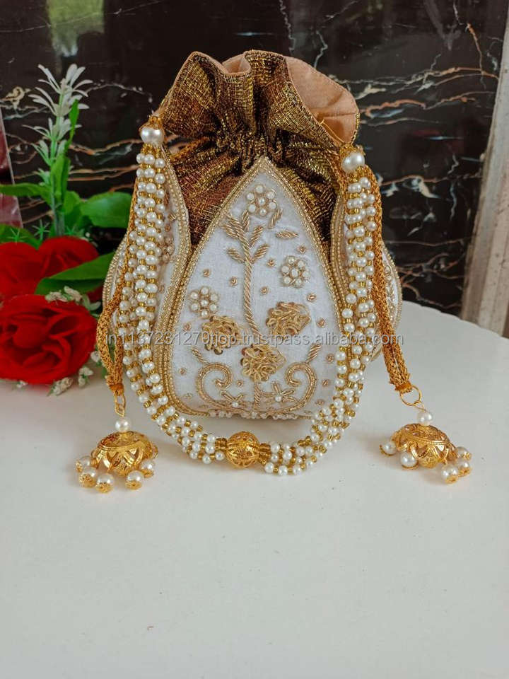 New Arrival Stunning Handmade Embossed Print Multi Color Zardozi Work Bridal Evening Purse Women Traditional Potli String Purses