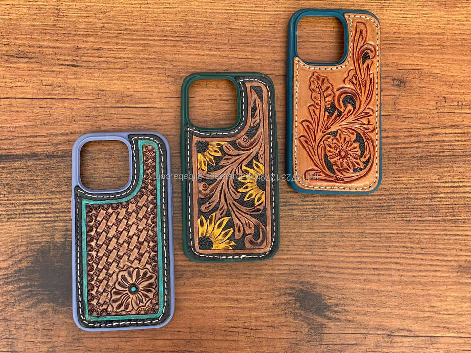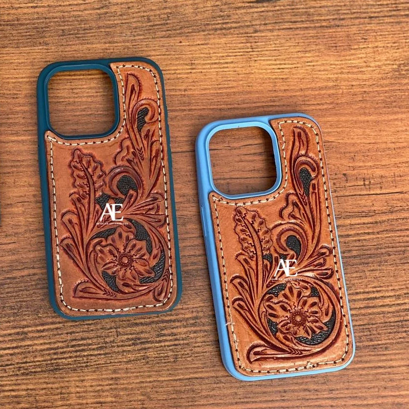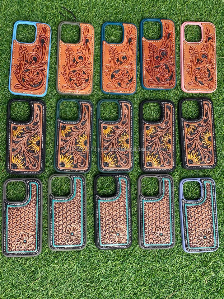 New Arrival Stylish Hand Tooled Leather Phone Case Personalized Vintage Luxury High Quality Phone 14 /15 Mobile Covers