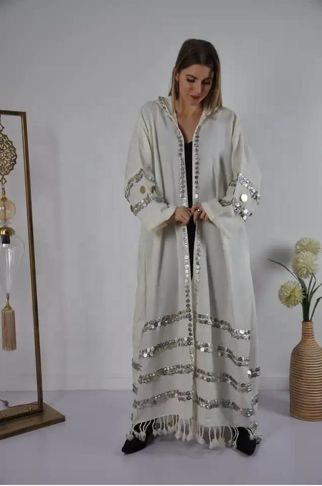 New Arrival Summer Abaya Hooded with Coins Embroidery Dress Abaya Islamic Kaftan Dress