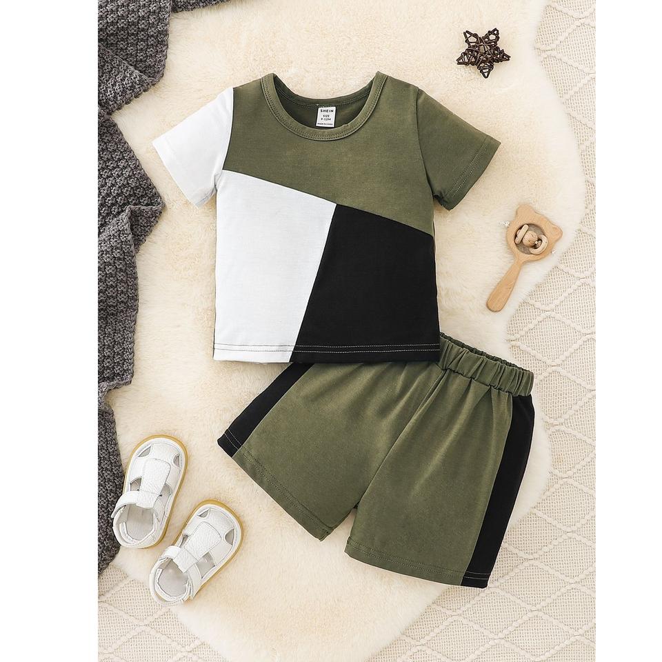 New Arrival Summer Kids Boys Clothing Cotton and Linen Short Sleeve Wholesale T-shirt Shorts Two-piece Set Export From BD
