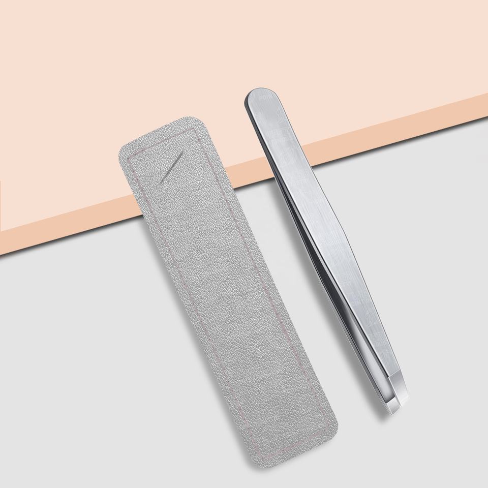 New Arrival Sustainable Steel Hand Made Silver Eyebrow Tweezer Plain Handle With Leather Case Beauty Tool High Quality