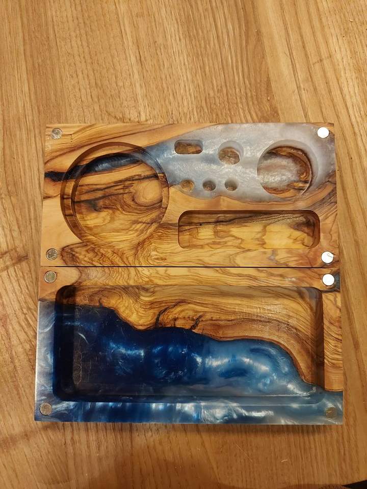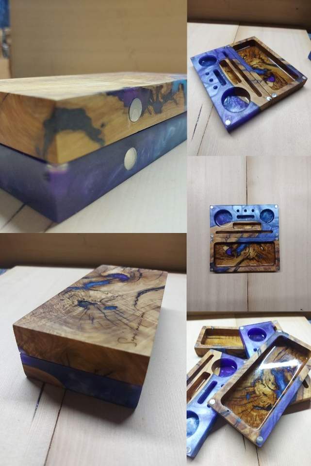 New Arrival TRADITION Modern Design Square Shape Epoxy Resin & Wood Ashtray Joint Custom Color Logo Portable Indoor and Outdoor