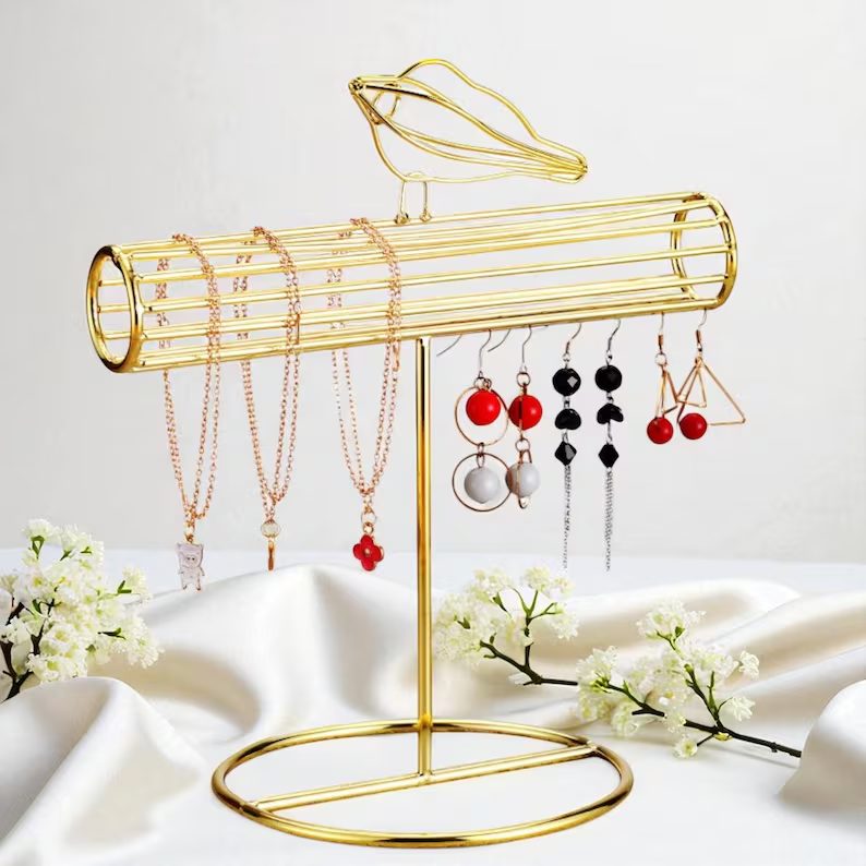New Arrival Tabletop Iron Jewelry Hanger With Hooks And Shelf Combination Great For Extra Storage Of Small Accessories