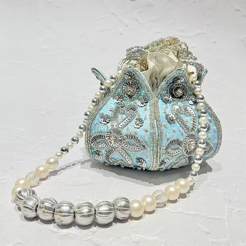 New Arrival Tari Work Lotus Potli Bags Luxury Wedding Heavy Work Potli Bags Wedding Favour