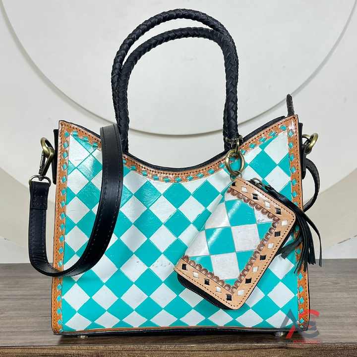 New Arrival Tote Bag & Mini Card Holder 2- Piece Matching Set Handmade Checkered Leather Crossbody Shoulder Handbag for Women's