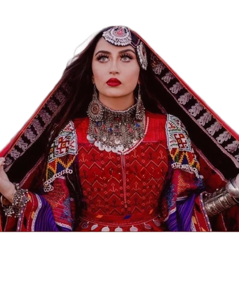 New Arrival Traditional Red Afghan Kuchi Dress With Handmade Multicolor Tribal Embroidery And Mirror Work