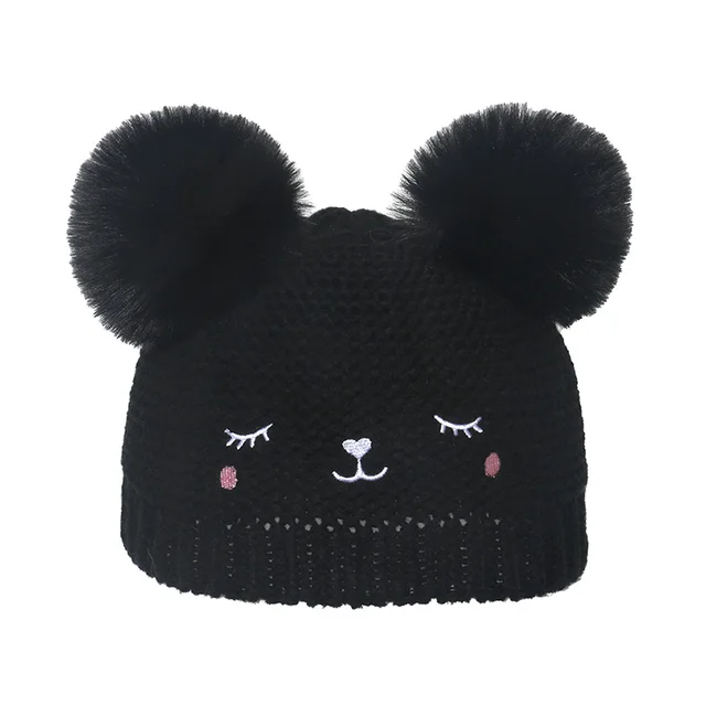 New Arrival Trendy Stylish Winter Knit Cap Cute Face Embroidery Acrylic Pom Pom for Infants for Daily Outdoor Activities Cycling