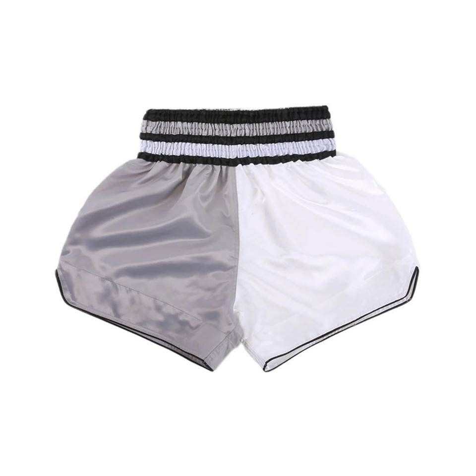New Arrival Two-Tone Satin Muay Thai Shorts Custom Logo and Full Sublimated Print High Street Style with Woven Tag