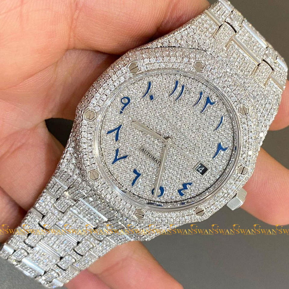 New Arrival VVS Clarity Moissanite Diamond Quartz Watch Luxury High Quality Hip Hop Branded Iced Out Custom Arabic Dials