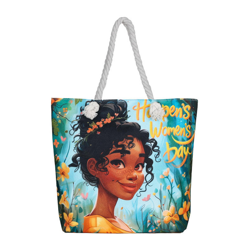 New Arrival Versatile Tote Bag for Women's Shopping Bag Creative Women's Printed Rope Large Capacity Beach Bag