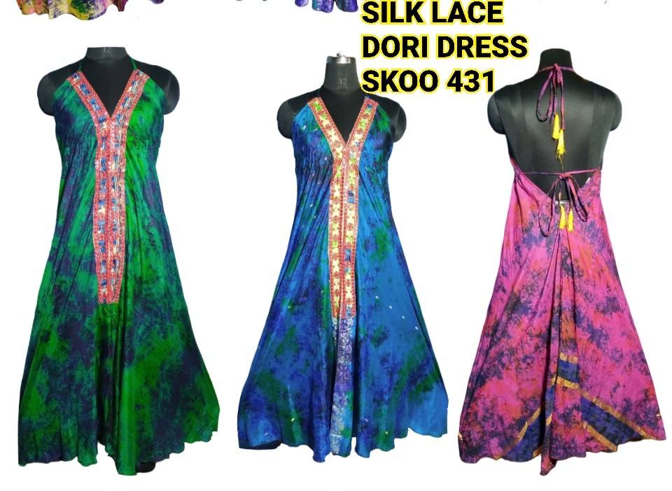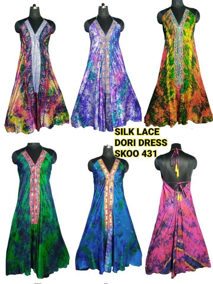 New Arrival Vintage 100% Silk Lace Digital Printing Tie-Dyed A-Line Floor-Length Boho Gypsy Hippie Dresses Natural Waist Free