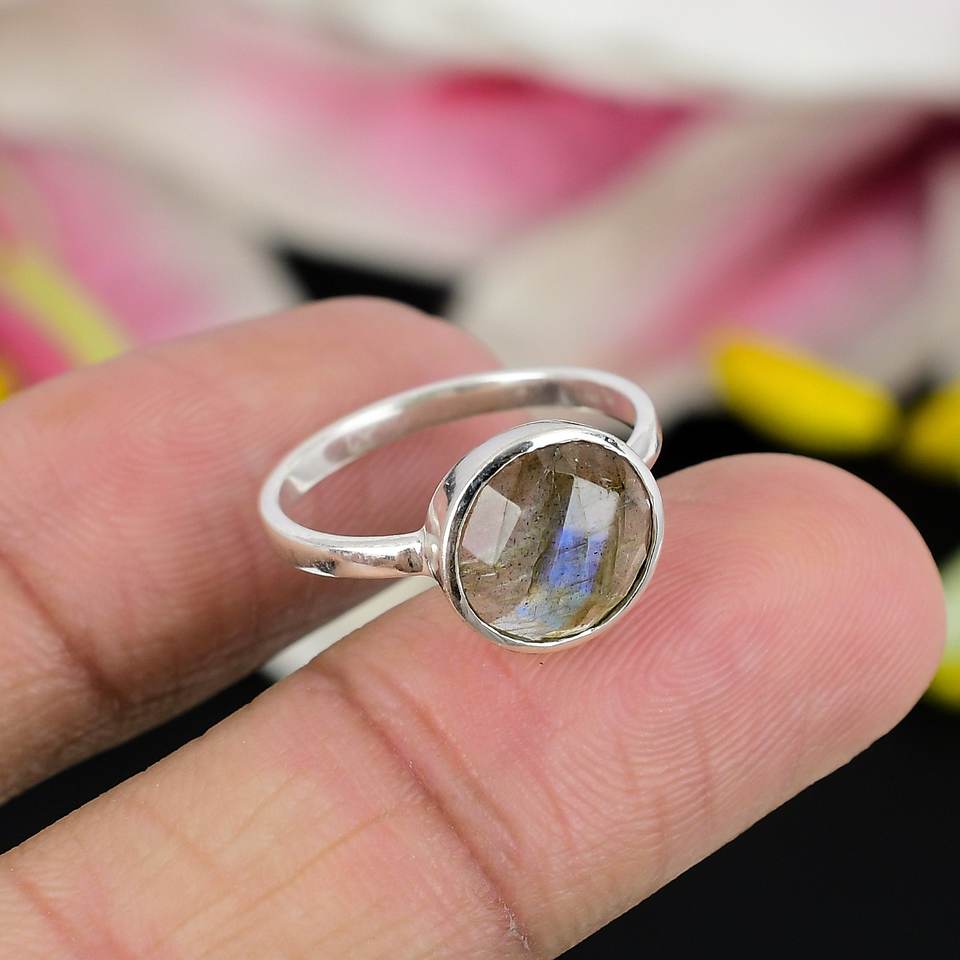 New Arrival Vintage Gold Plated Jewelry Ring Hot Selling 925 Sterling Silver Ring Natural Labradorite Gemstone Jewelry Fine Ring