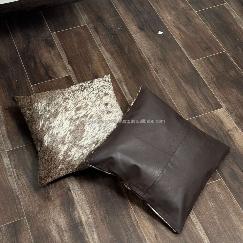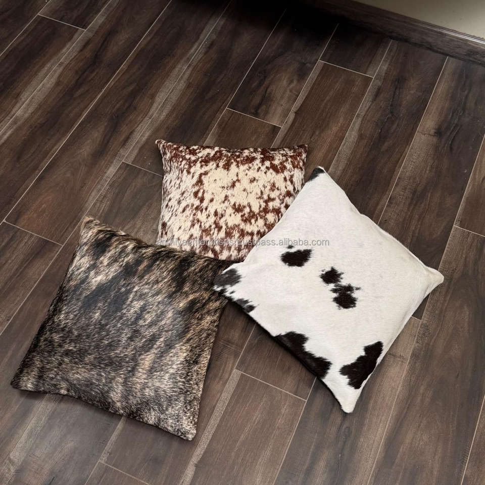 New Arrival Vintage Home Decor Hair-On Cowhide Leather Square Chair Genuine Leather Cushion Pad Seat Cushion Dining Stool Bench