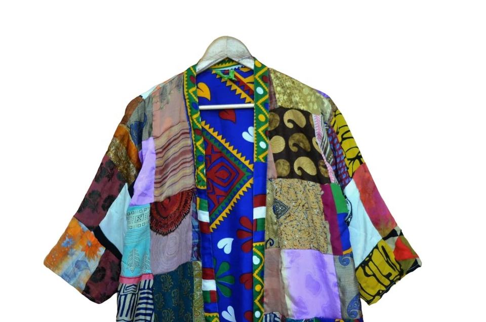 New Arrival Vintage Recycled Silk Kimono Chiffon Nightwear Robe Anniversary Gift for Women