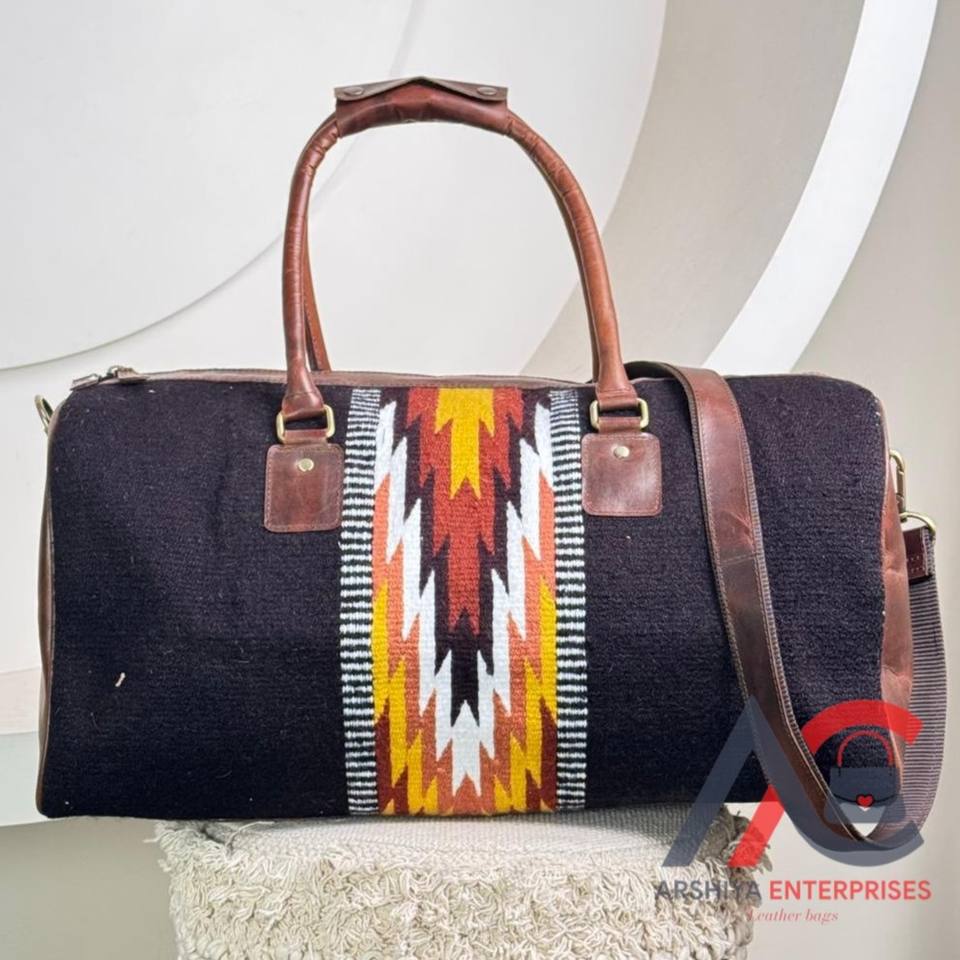 Genuine Leather Saddle Blanket Aztec Duffle Bags