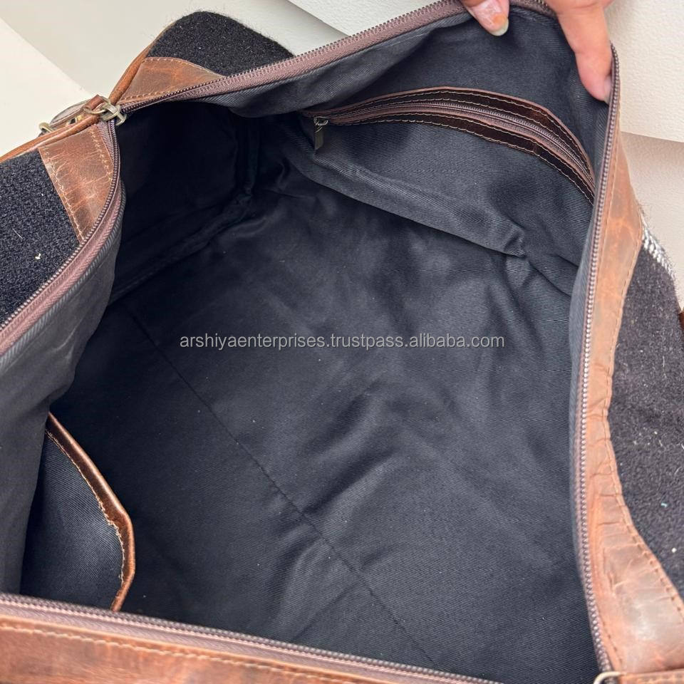 New Arrival Vintage Style Aztec Genuine Leather Duffel Bags Personalized Western Unisex Spirit Black Wool Large Weekender Bags