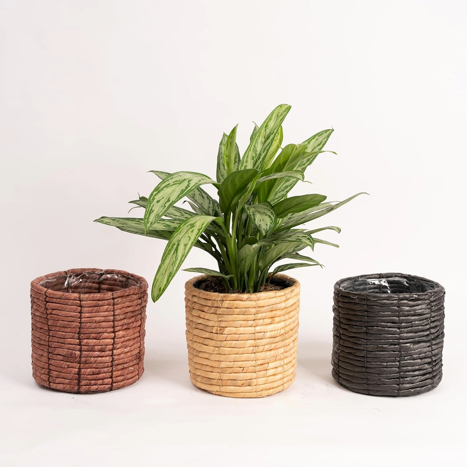 New Arrival Water Hyacinth Basket Plant Pot Handmade Round Planter For Home Office Desktop And Indoor Plants