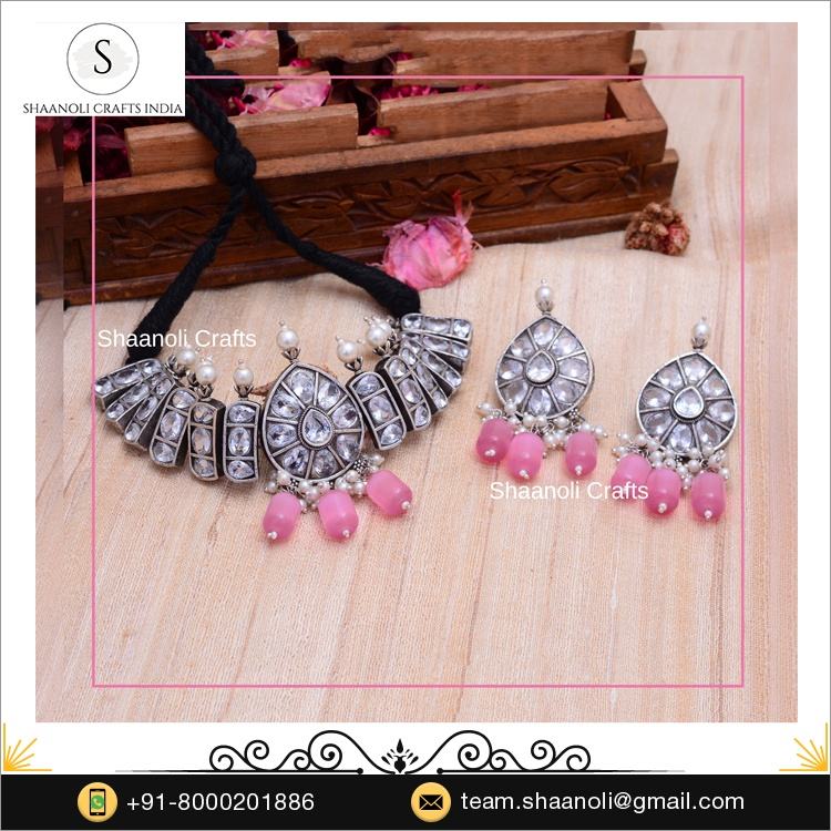 New Arrival Wedding Wear Silver Oxidized Choker Necklace Set With Earrings for Women and Girls for Wedding Party Wear