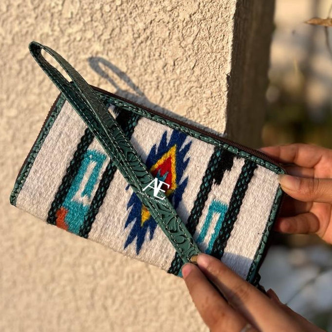Type:Aztec Fabric Leather Colorful Hand Clutch // Wristlet Wallets
