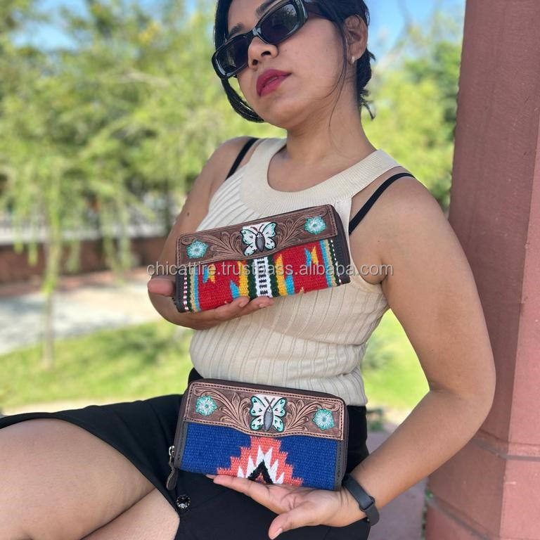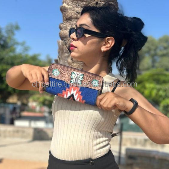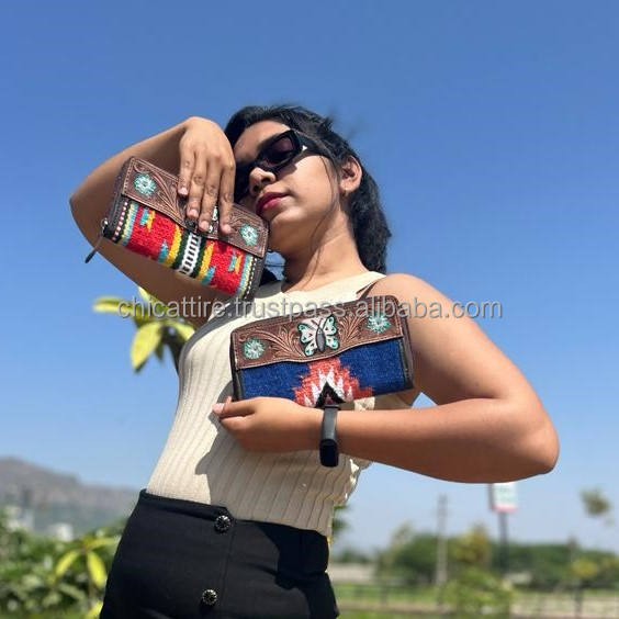 Product name:Designer Tooled Aztec Colorfull Clutch