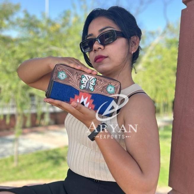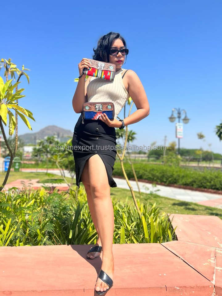 Product name:Designer Tooled Aztec Colorfull Clutch