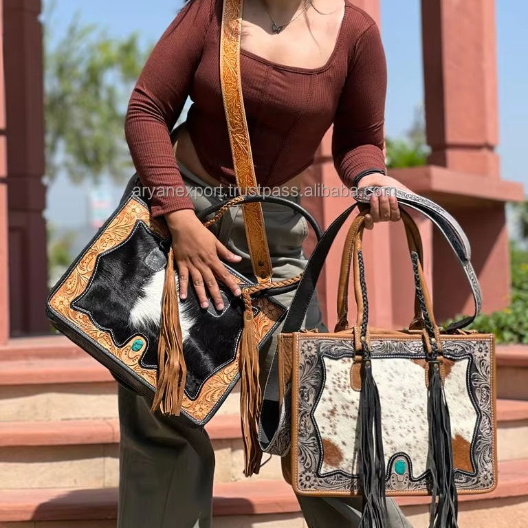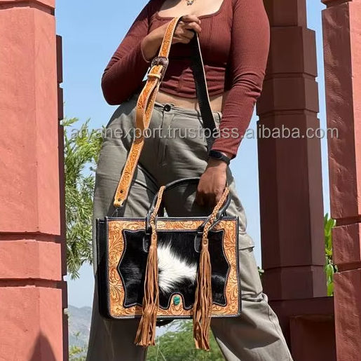 Product name:Hand Tooled Cowhide Leather Women Tote Bag