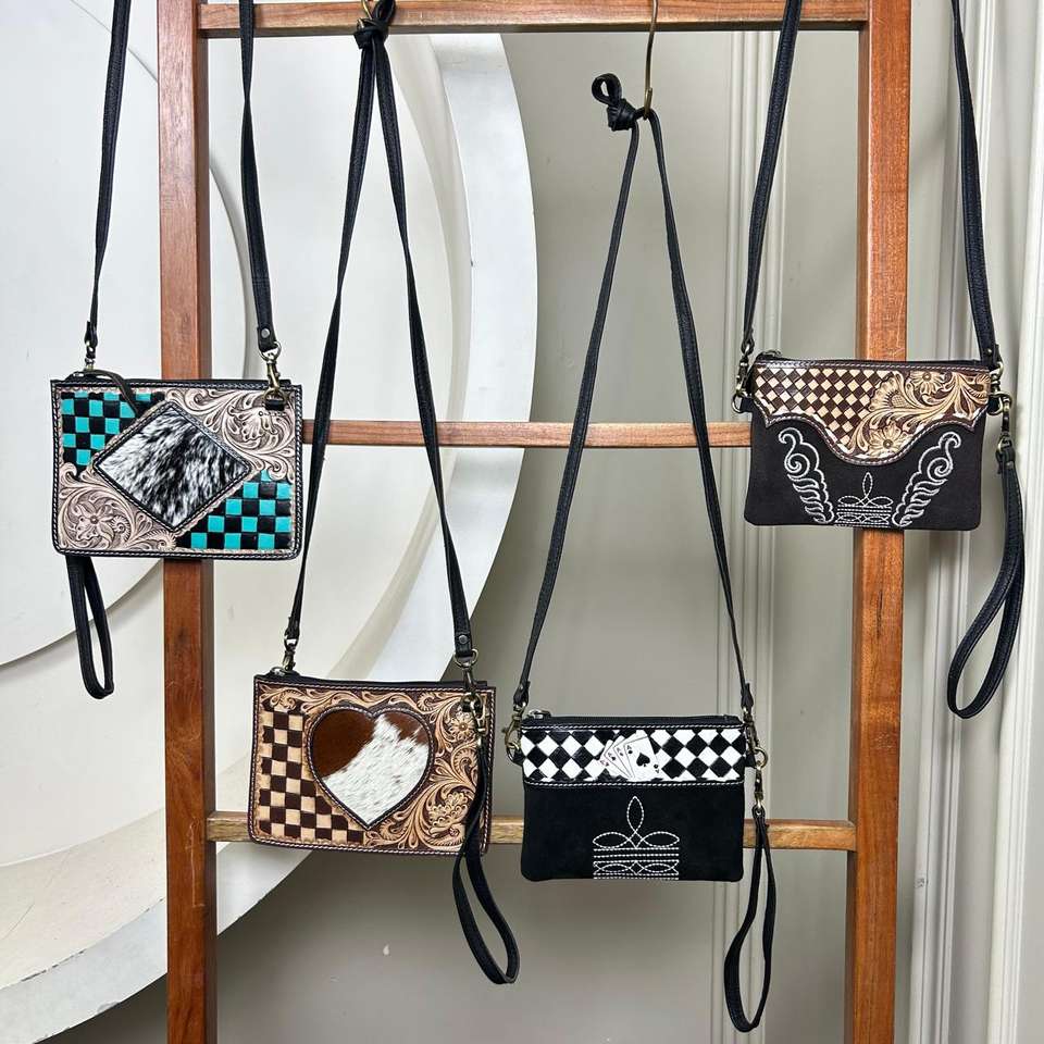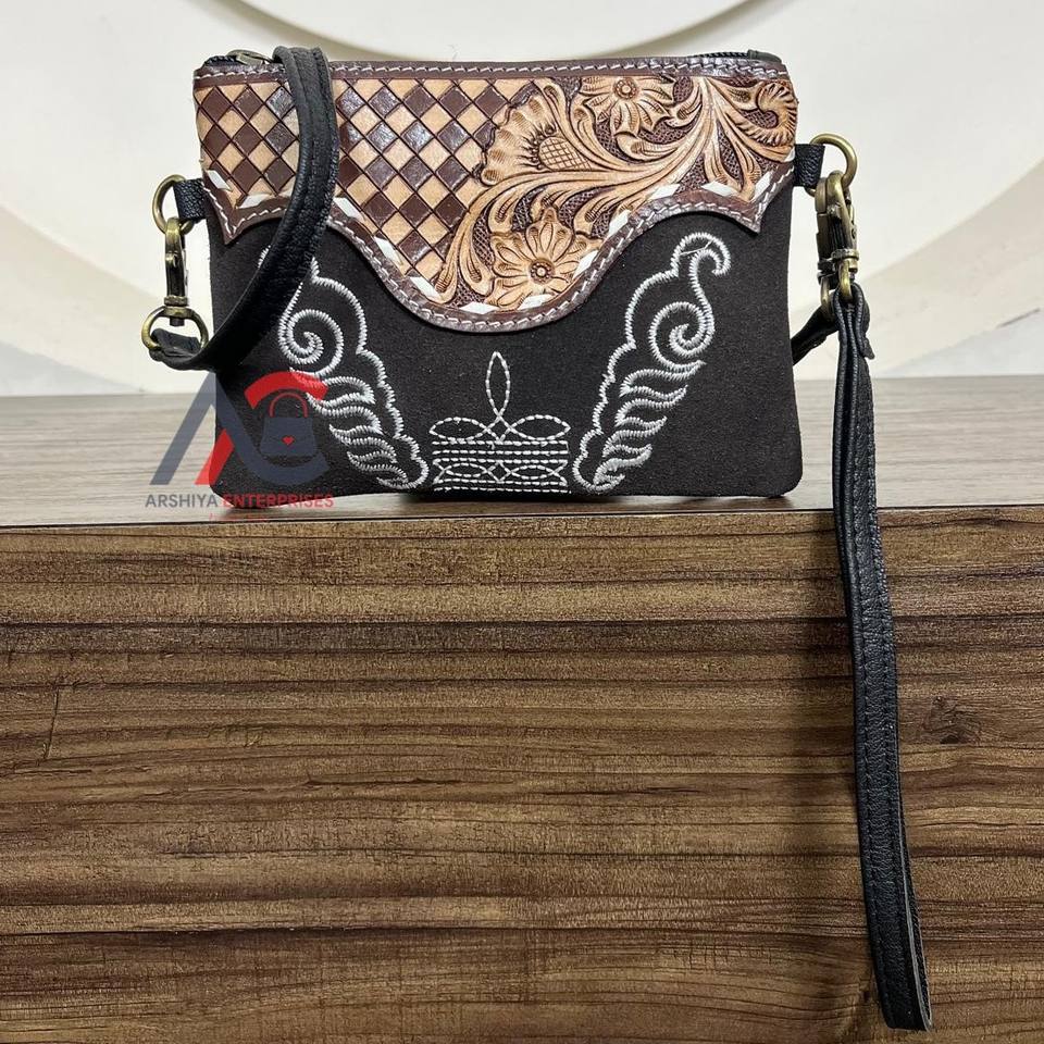 Product Name:Hand Tooled Suede Leather Crossbody Bag With Wristlet