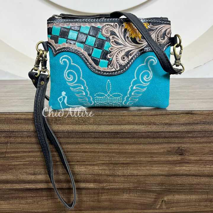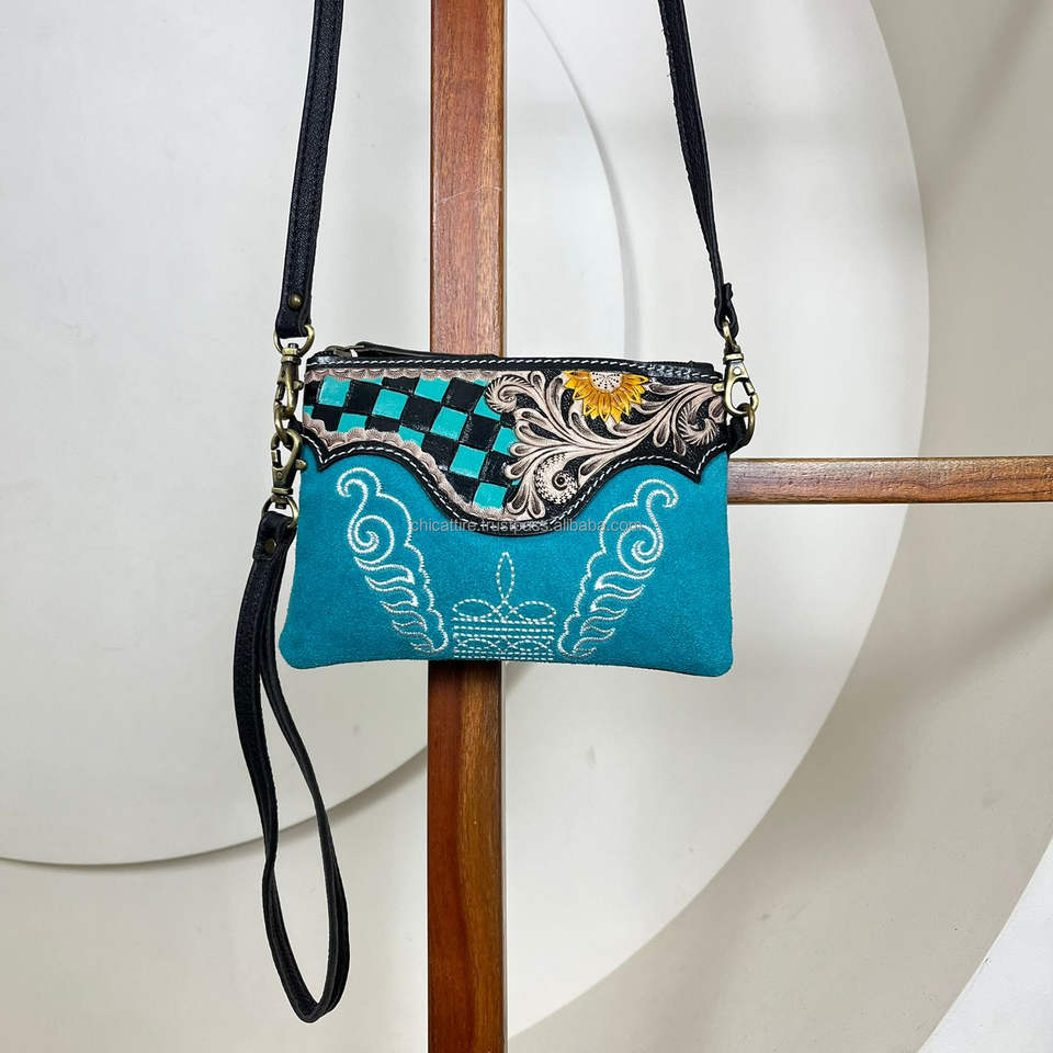 Product name:Hand Tooled Suede Leather Crossbody Mini Bag