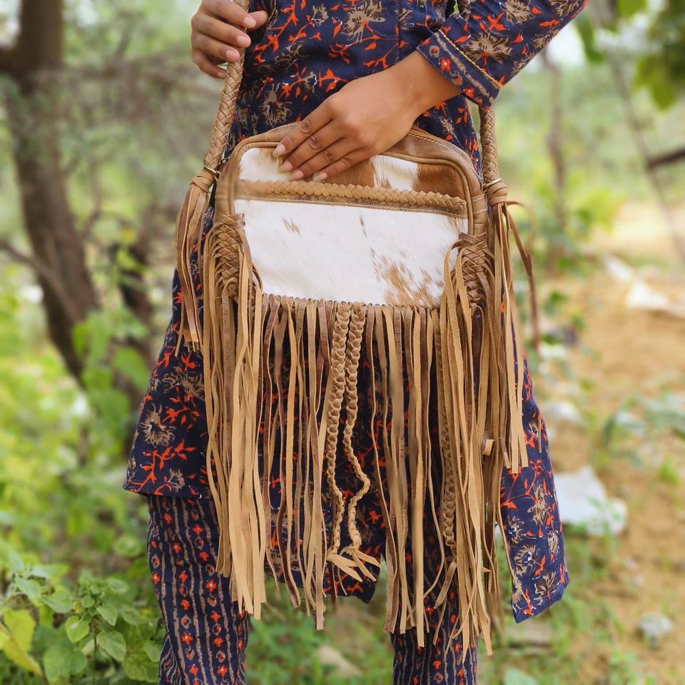 New Arrival Western Handmade Hair On Fur Genuine Leather Fringe Sling Bags Stylish Women's Concealed Carry Casual Crossbody Bags