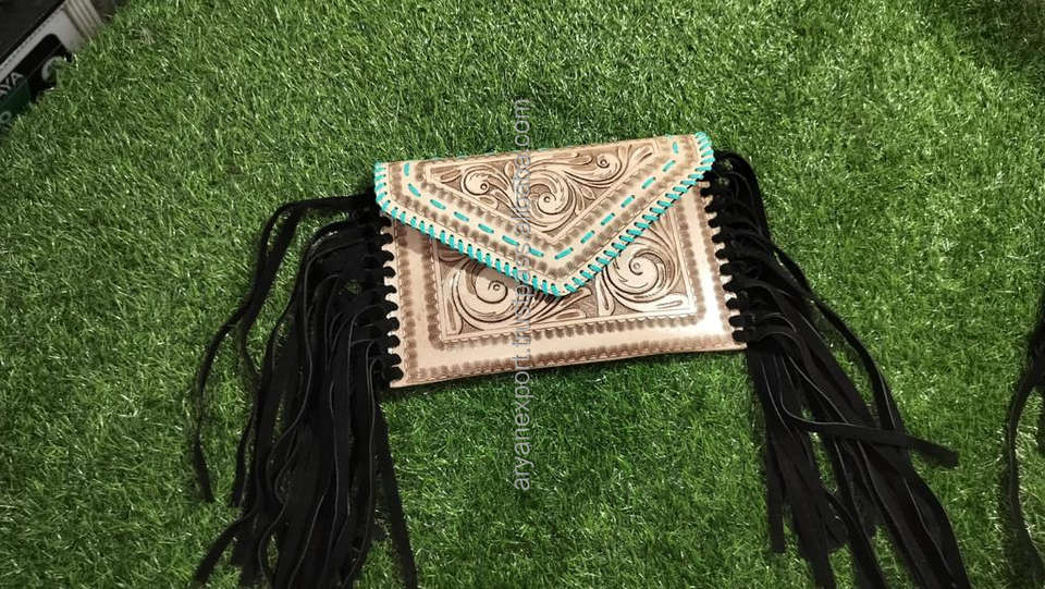 Product name:Hand Tooled Leather Fringe Sling Bags