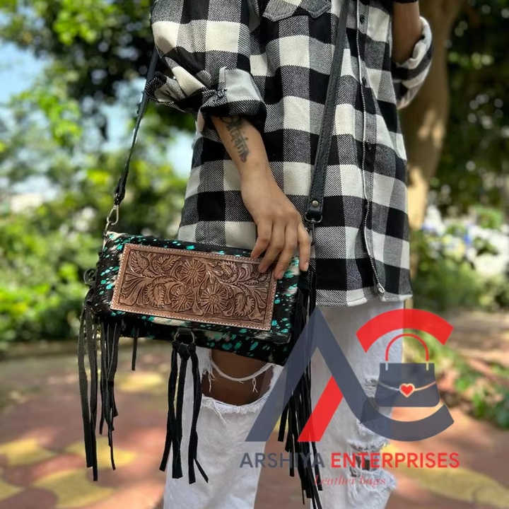 New Arrival Western Real Handmade Hair on Fur Tooled Leather Fringe Sling Bag Stylish Women Concealed Carry Casual Crossbody Bag
