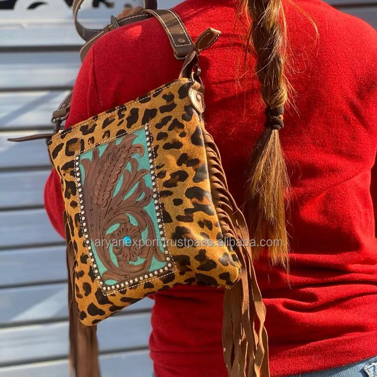 Product name:Women Hand Tooled Leather Fringe Crossbody Bag