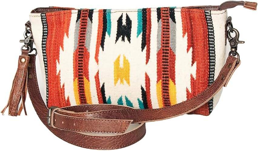 New Arrival Western Style Aztec Leather Fringe Handbag Women Vintage Unique Southwestern Saddle Blanket Ladies Sling Bag
