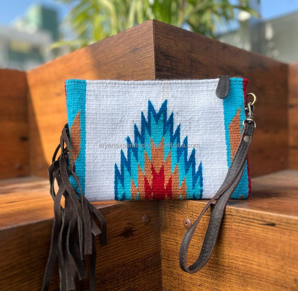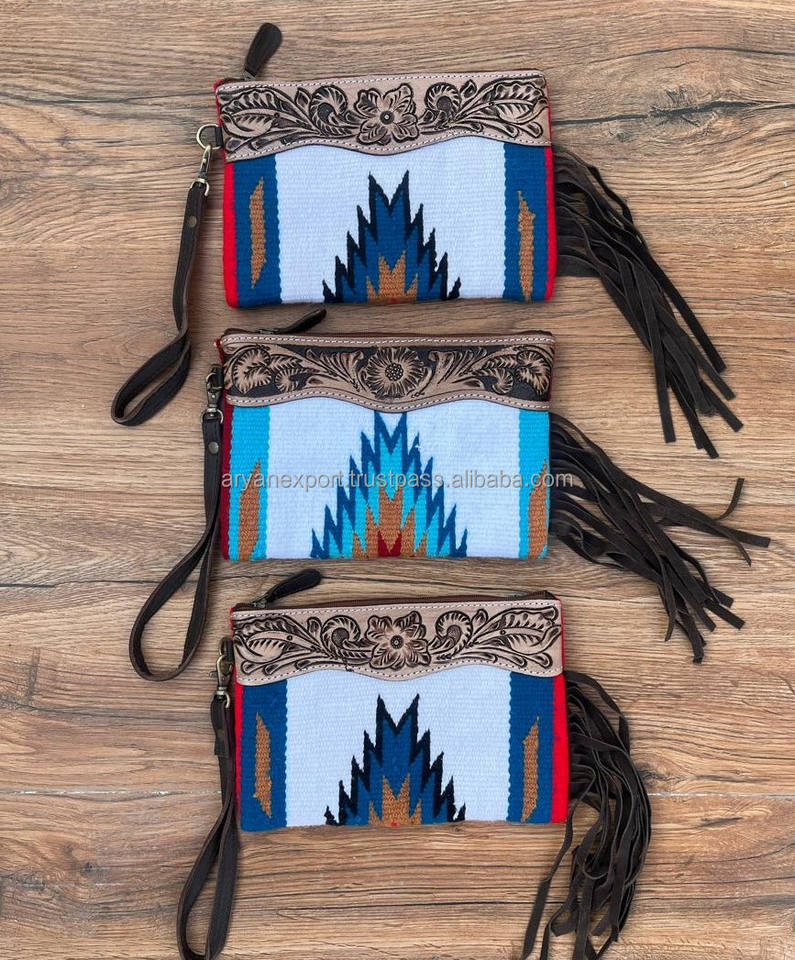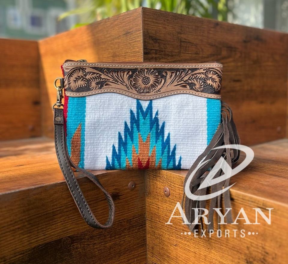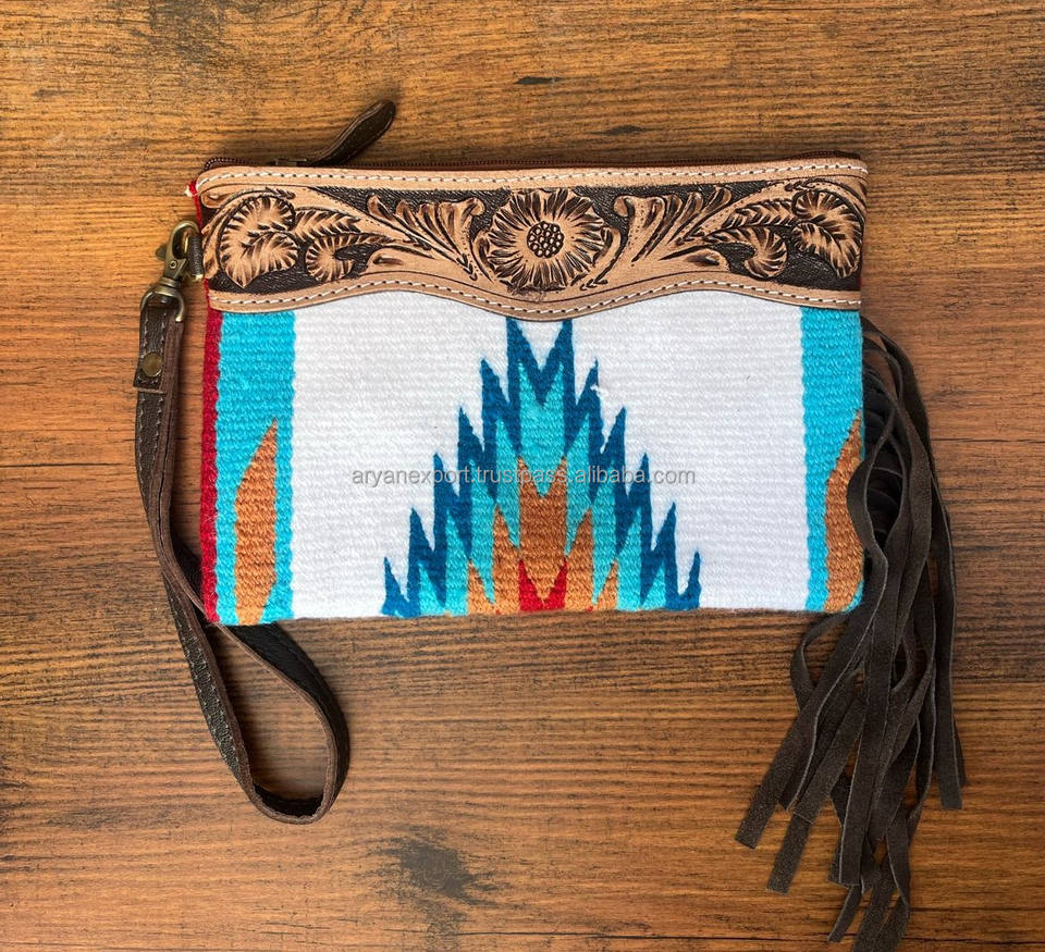 Product name:Stylish Aztec Tooled Leather Tassel Clutch