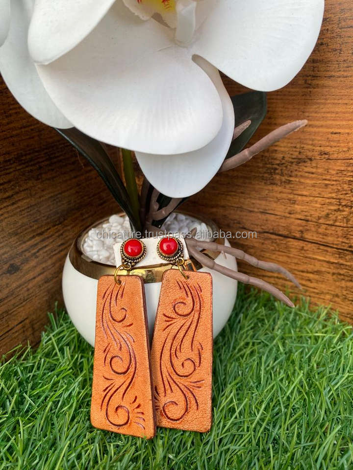 New Arrival Western Style Hand Tooled Carving Leather Earrings Women Cute Trendy Teardrop Earring Tooled Leather Fashion Jewelry