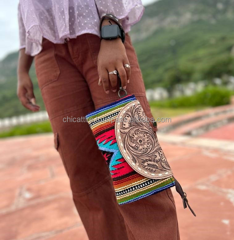 Product name:Stylish Aztec Tooled Leather Wristlet Clutch
