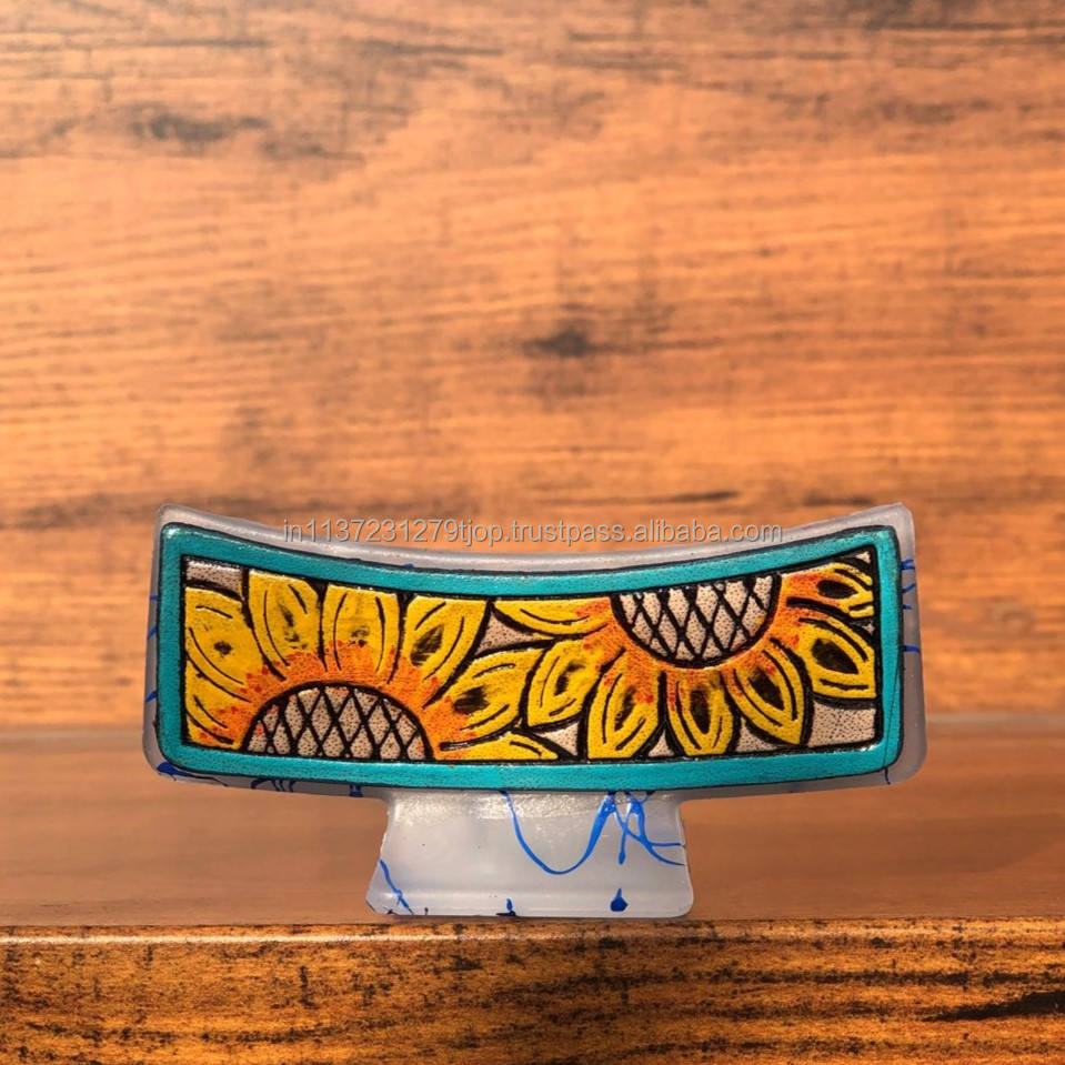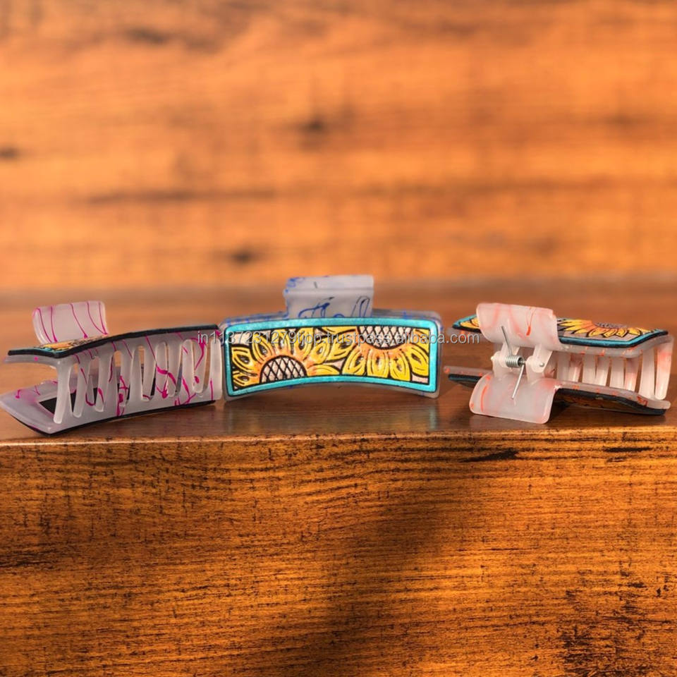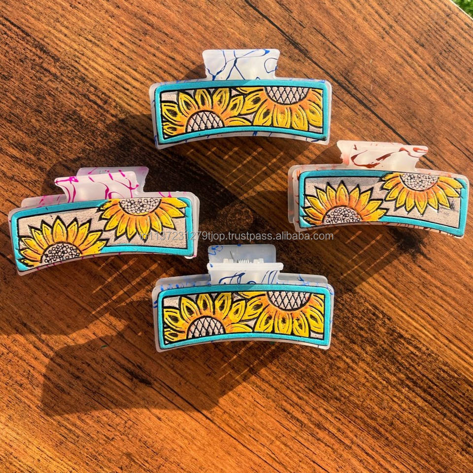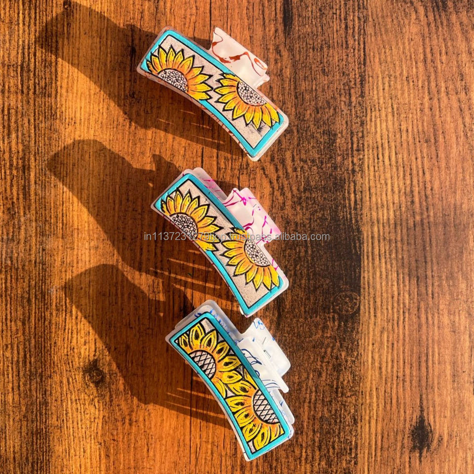 New Arrival Western Style Handmade Tooled Leather Hair Claw Clips Real Handmade Leather Hair Pins Accessories for Women and Girl