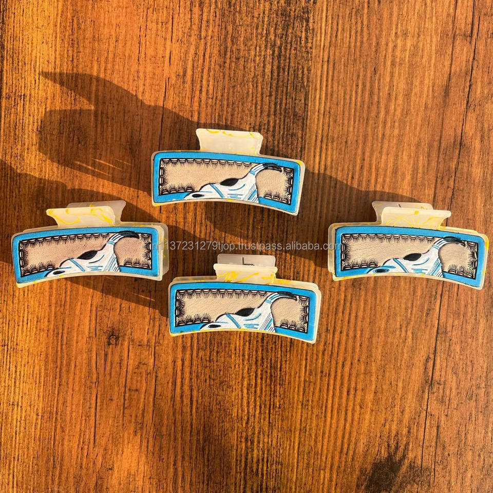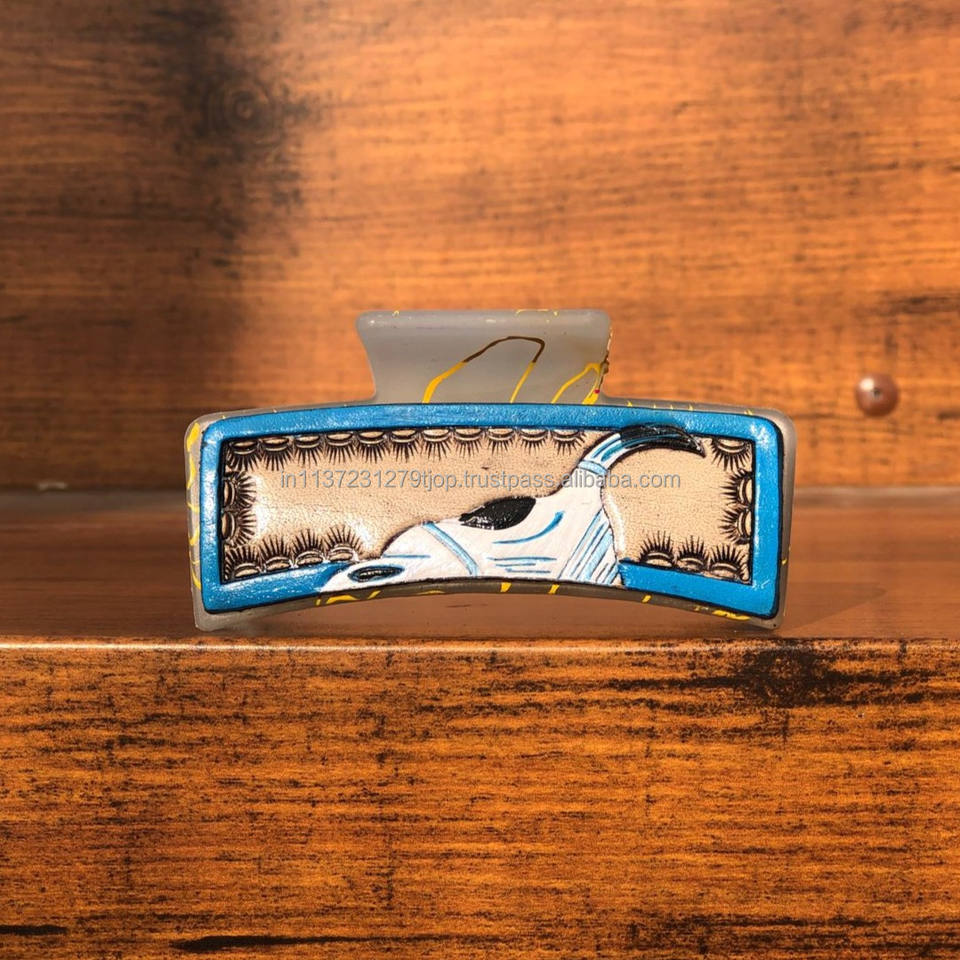 New Arrival Western Style Handmade Tooled Leather Hair Claw Clips Real Handmade Leather Hair Pins Accessories for Women and Girl