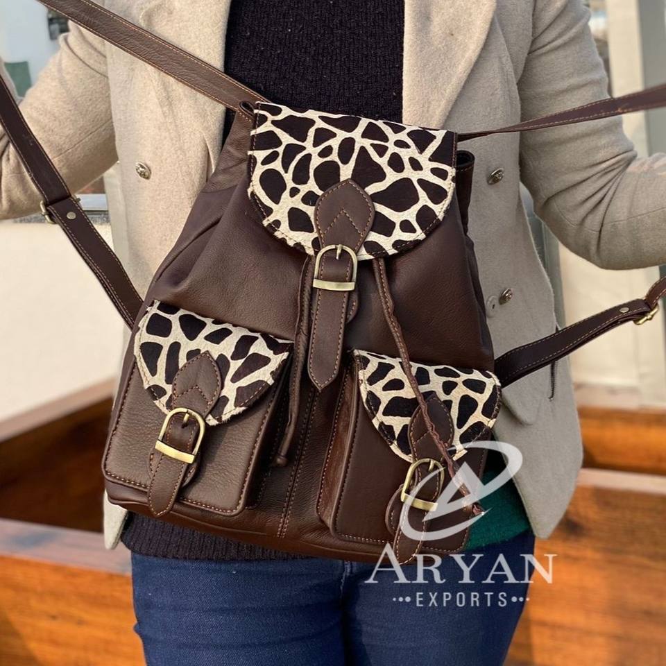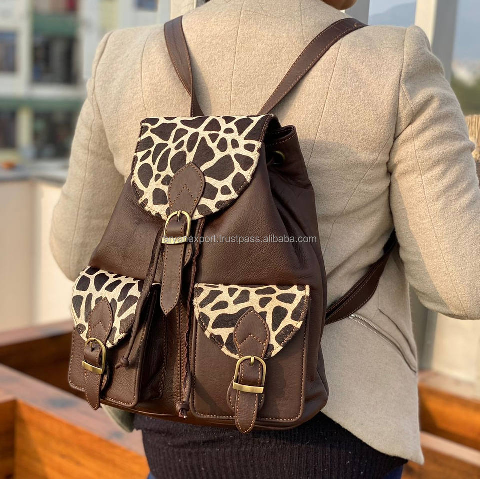 New Arrival Western Style Multi Recycled Animal Print Fur Leather Backpack Women Rainbow Color Ideal Size Multi Leather Backpack