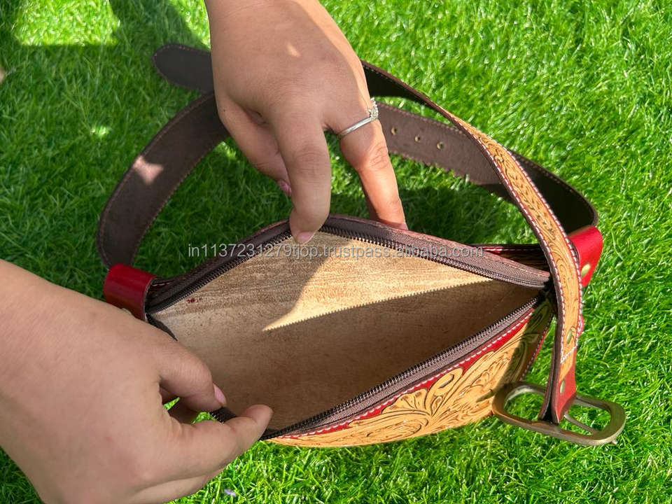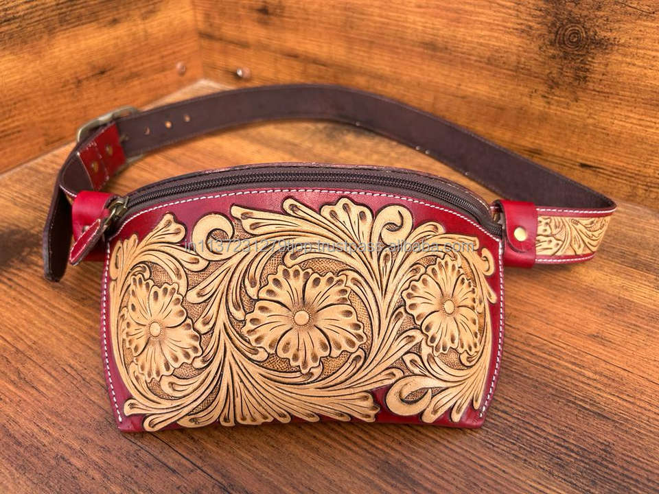 Product name:Tooled Leather Unisex Crossbody, Hip/Bum Bag