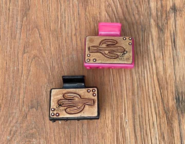 Engraved Leather Mini Hair Claw Clips