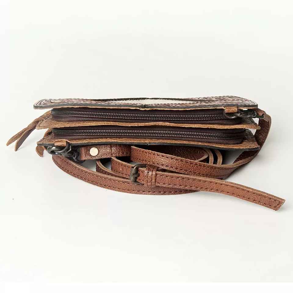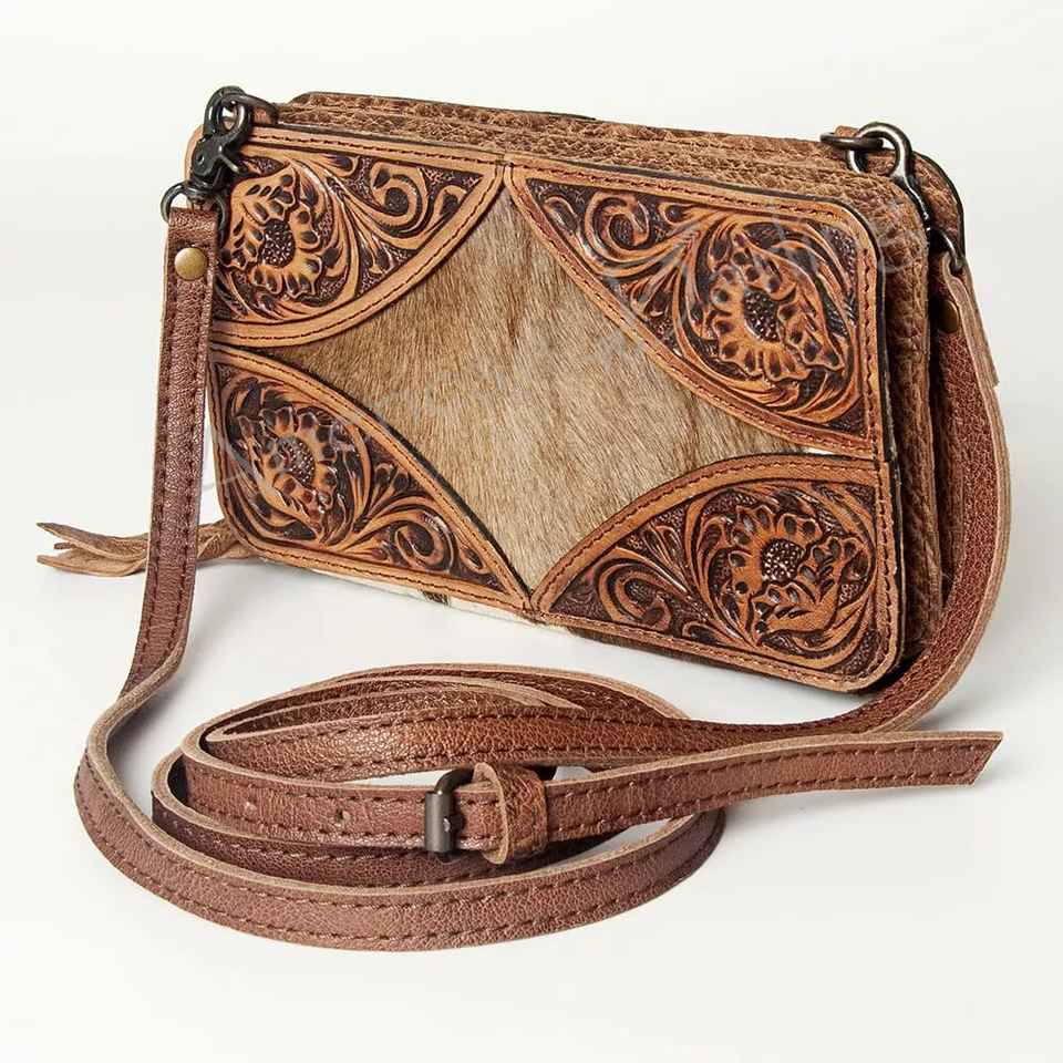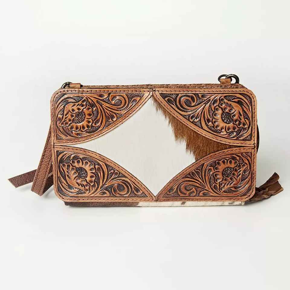 New Arrival Western Genuine Leather Clutch Bag with Zipper Closure Vintage Tassel Hand Tooled Sling Design Ready Stock for Girls