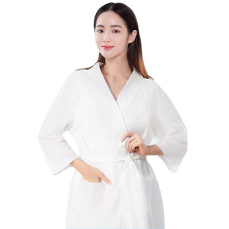 New Arrival White Disposable Women's SPA Beauty Wraps Robe Bathrobe Natural Nonwoven Bathrobe