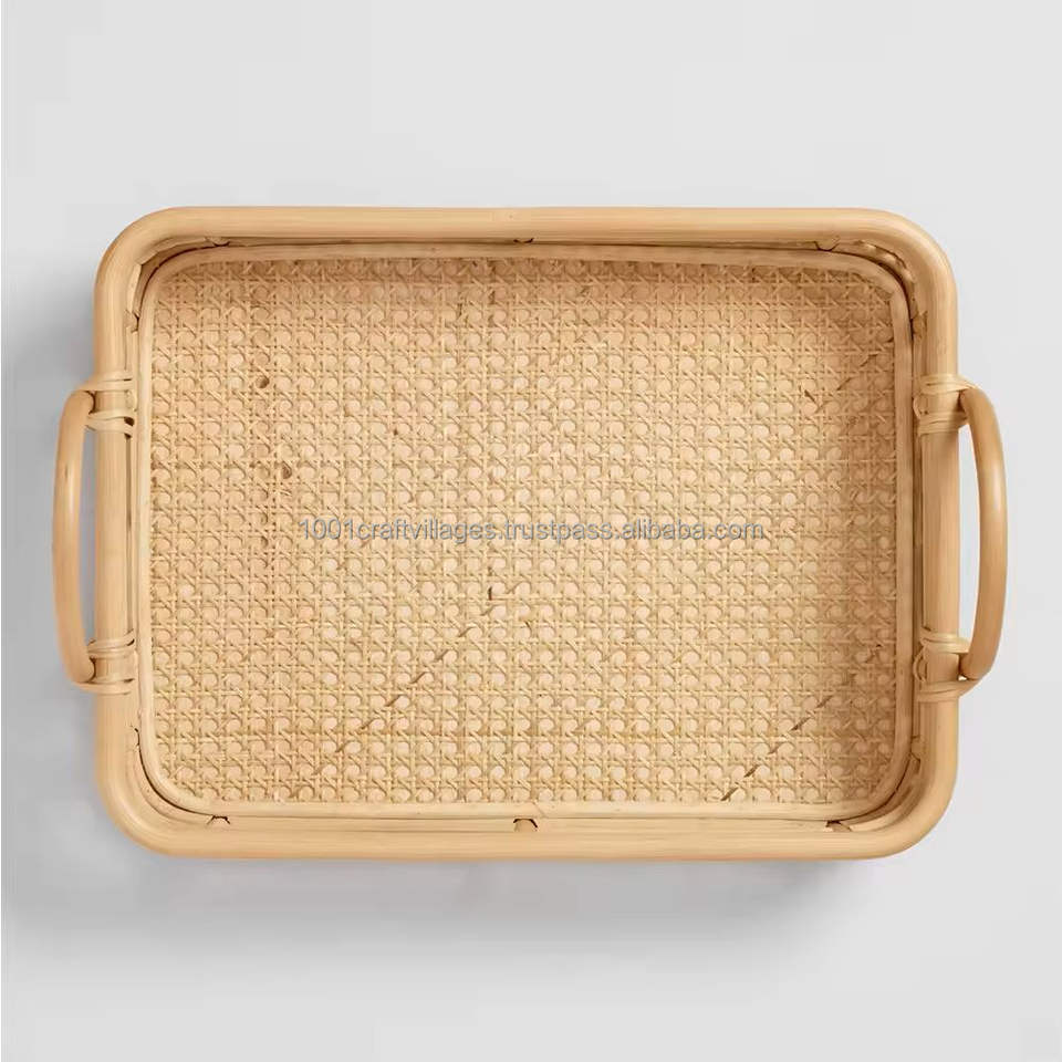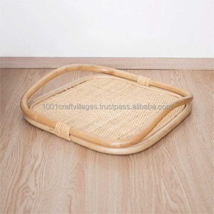 New Arrival Wholesale Handmade Rattan Tray Manufacturer Durable Sustainable Natural Eco Friendly Serving Tray From Vietnam