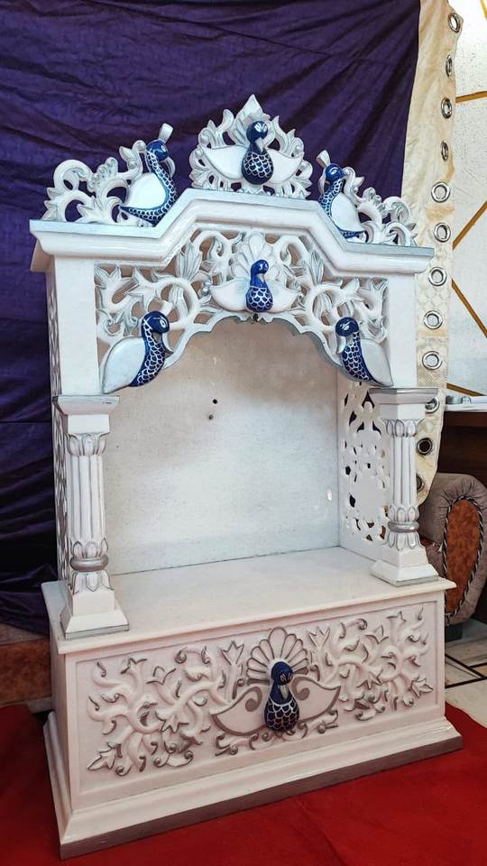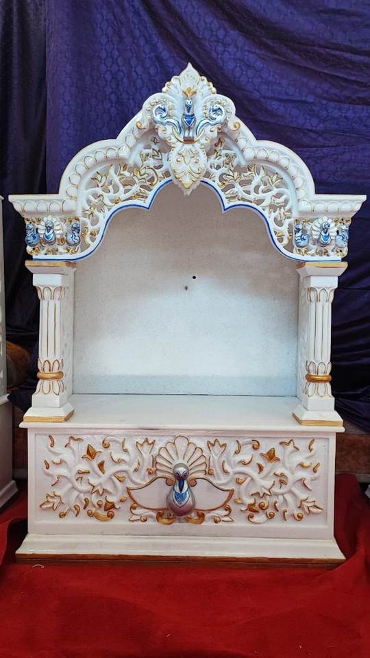 New Arrival Wholesale Makrana Marble Mandir for Home & Office Indian Handcrafted Pooja Temple with Dome and Jali Work