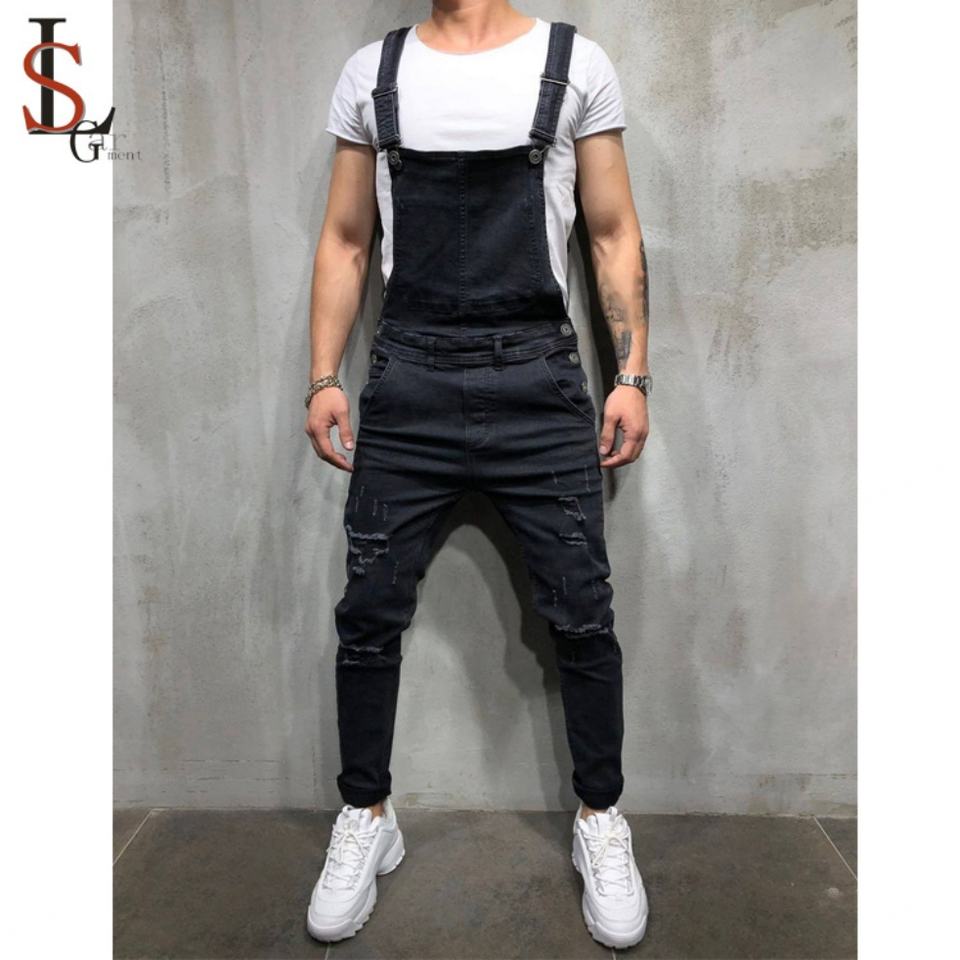 New Arrival Wholesale Mens Streetwear Ripped Jeans Overalls Fashion Mens Full Length Slim Fit Denim Jumpsuit